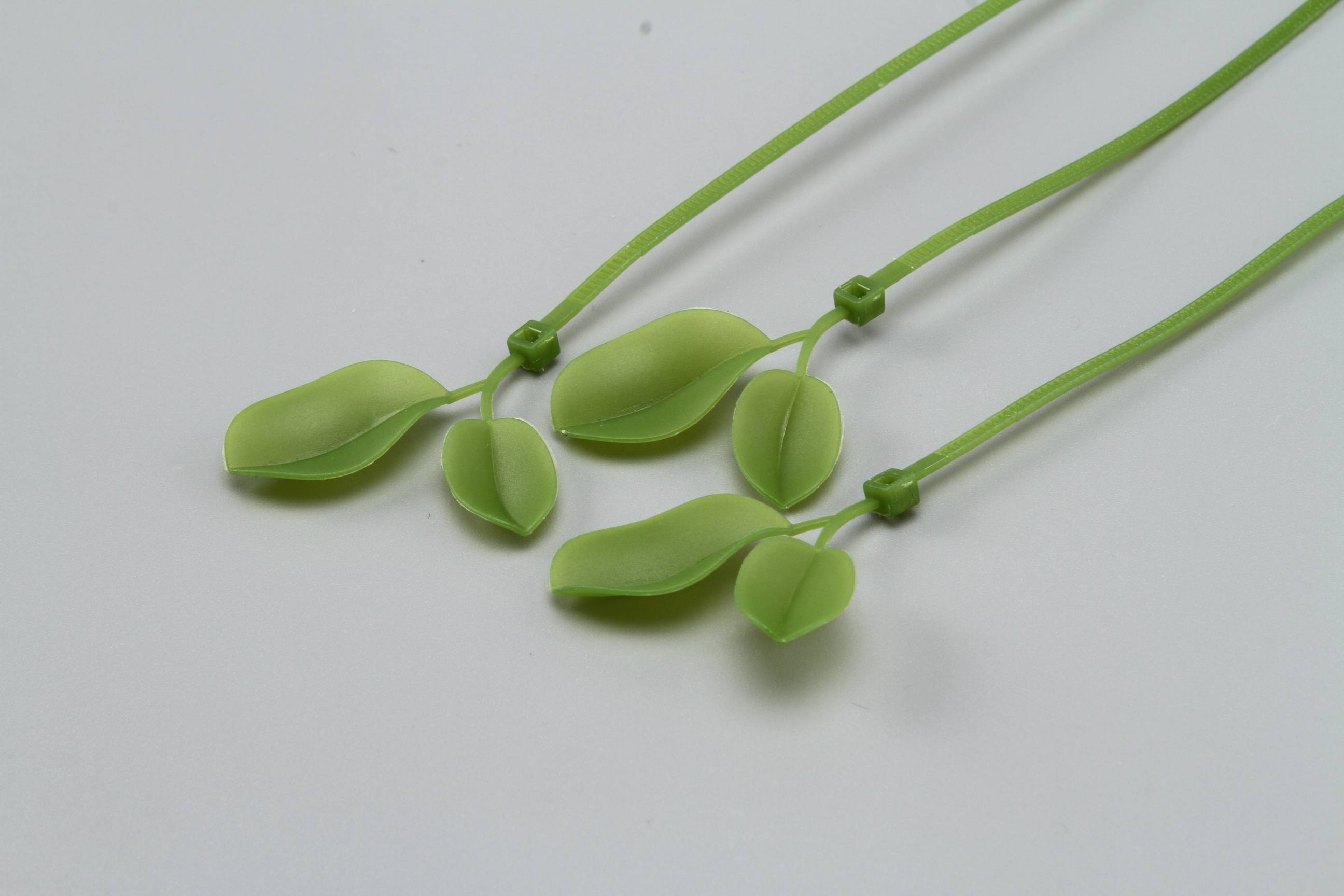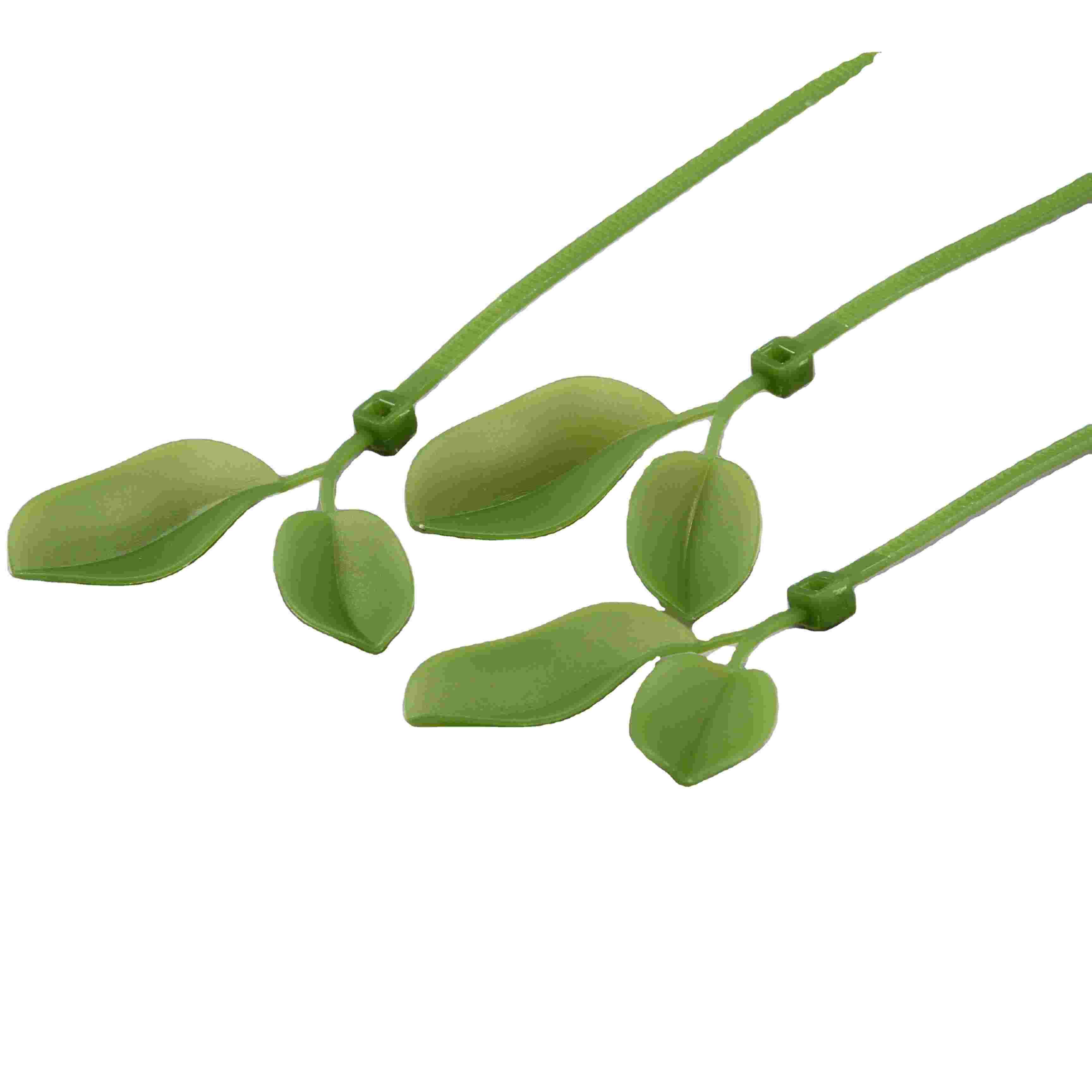 Det unikke bladdesign af disse kabelbindinger giver et naturligt udseende, der blander problemfrit med planten, hvilket gør dem til et foretrukket valg for gartneri og landskabspleje. De er ideelle til brug i applikationer såsom at sikre unge planter, træningsanlæg til at vokse i en bestemt retning og understøtte grene, der kan være for tunge.